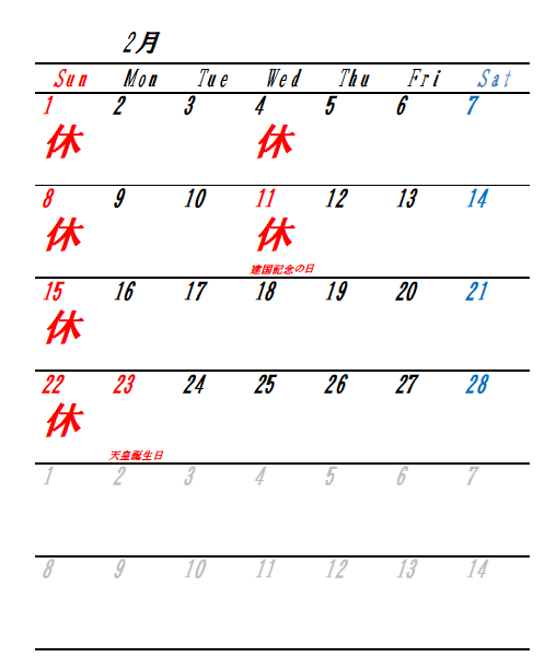 2月のおやすみです。